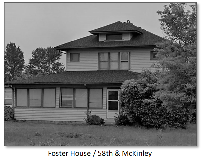 At South 58th Street and McKinley Avenue, surrounded by a high hedge, the W. B. Foster house, built-in 1903, still stands as the only surviving building of the flames of July 10, 1914.