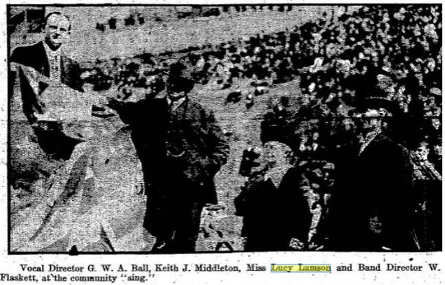 One of the events Lamson helped to organize was the first community “sing” in the Stadium in 1914. Eight thousand people came together to sing patriotic songs, religious hymns, and heartfelt folk melodies. It is important to note that a school children’s choir led by Lucy sang a patriotic song – Soldiers’ Chorus, from “Fanst.” This community sing was not the last one and the choir continued to delight Tacomans with their beautiful singing. As you can imagine, each event was made possible with the musical support from Lucy Lamson and her choir.
